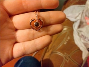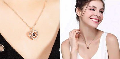 При близком подсвечивании любым источником света, он создает удивительную световую проекцию слов “Я тебя люблю” на 100 языках мира, включая русский язык.